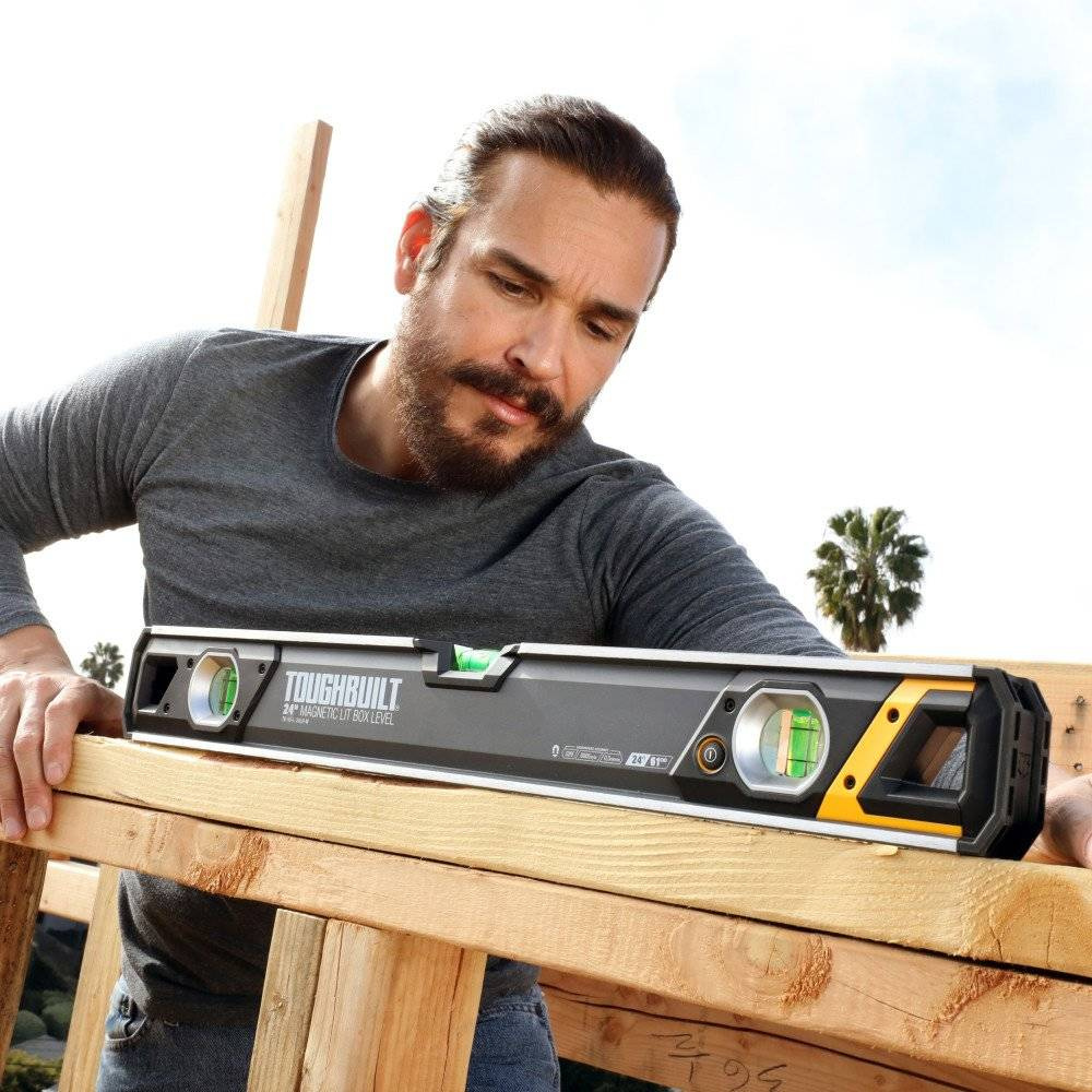 Poziomica ToughBuilt TB-H2-L-M120LH-M to lekka, magnetyczna poziomica z podświetleniem o długości 120 cm z fiolkami podświetlanymi diodami LED, które zapewniają  łatwiejszy odczytu. Poziomica ToughBuilt TB-H2-L-M120LH-M wyposażona jest w silne magnesy, które umożliwiają zamontowanie poziomicy do stalowych elementów. Narzędzie zostało wykonane ze szczególną precyzją, dzięki czemu zapewnia dokładność odczytu i pomiaru kątów.