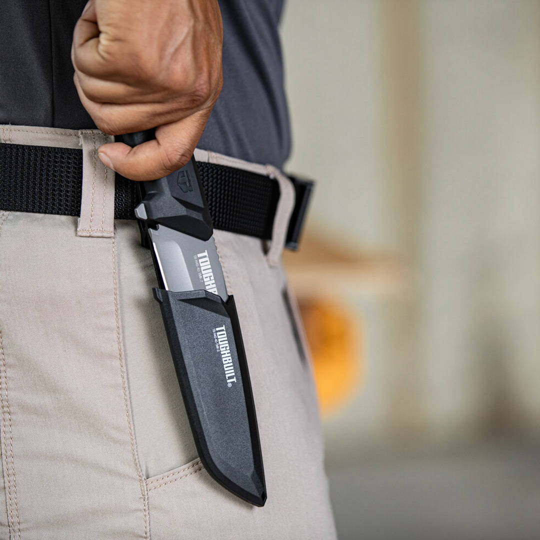 ToughBuilt TB-H4S-40-TMK-2 to nóż z ostrzem o długości 10,1cm wraz z osłoną. Ostrze wykonane jest z wysokiej jakości stali nierdzewnej, która została pokryta warstwą tytanu w celu zwiększenia wytrzymałości oraz żywotności samego ostrza. Nóż posiada ergonomiczny uchwyt, wykonany z tworzywa, który jest miękki w dotyku. Takie parametry sprawiają, że noż pewnie leży w dłoni. Osłona ostrza wykonana jest z tworzywa sztucznego i posiada zintegrowany hak do powieszenia noża na pasie narzędziowym bądź ścianie grodziowej w torbach transportowych. Konstrukcja uchwytu pozwala na zamocowanie smyczy, sznurka, bądź małego karabińczyka.