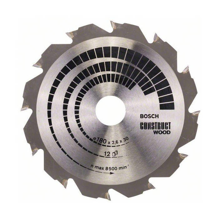 Bosch 2608640632 to tarcza pilarska przeznaczona do pilarek do cięcia drewna. Tarcza przeznaczona jest nie tylko do cięcia drewna, ale także do cięcia desek szalunkowych, płyt wiórowych, drewna konstrukcyjnego, belek drewnianych. Ponadto tarcza poradzi sobie z betonem komórkowym. Średnica tarczy wynosi 180mm, a otwór mocujący ma średnicę 30mm. Tarcza posiada 12 zębów zakończonych węglikiem spiekanym (potocznie nazywanym widią). Tarczę można zastosować na wszystkie urządzenia posiadające możliwość zamocowania tarczy o średnicy 180mm oraz posiadających otwór mocujący o średnicy 30mm.