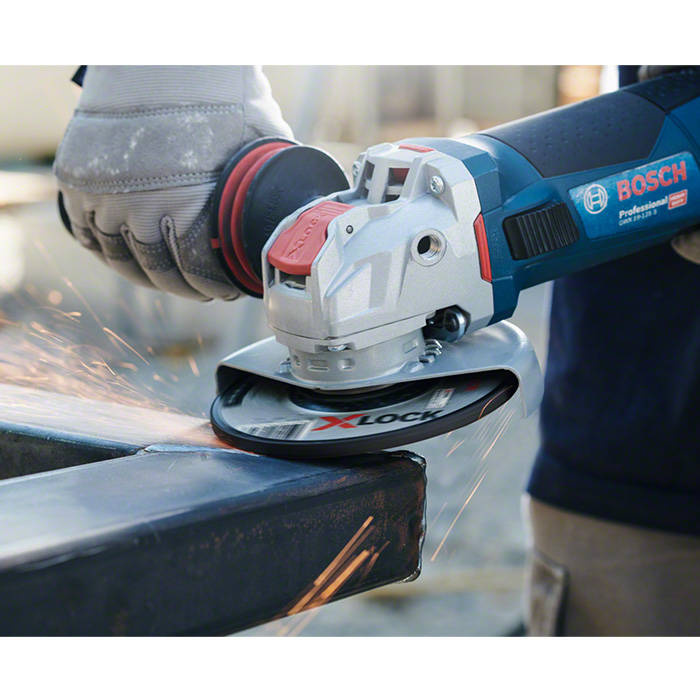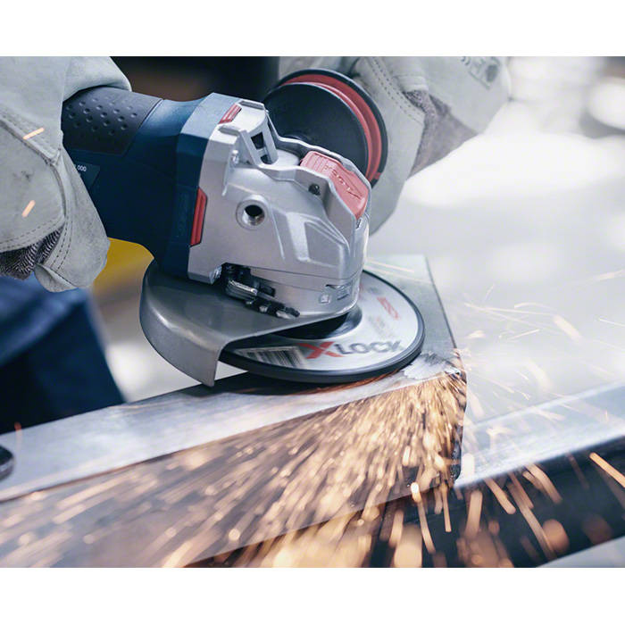 Tarcza Bosch 2608619258 X-LOCK przeznaczona jest do szlifierek kątowych z systemem X-LOCK. Tarczę można także zastosować w tradycyjnych szlifierkach kątowych z otworem mocującym o średnicy 22,23mm. Tarcze X-LOCK ze względu na specjalnie zaprojektowany chwyt mocujący zapewniają pełne przenoszenie mocy urządzenia na tarczę. W tym systemie nie występuje efekt "ślizgania się tarczy" w uchwycie mocującym. Kolejną zaletą systemu X-LOCK jest błyskawiczna i beznarzędziowa wymiana osprzętu poprzez pociągnięcie dźwignie na szlifierce kątowej odpowiedzialnej za wymianę tarczy. Zakładanie tarczy odbywa się poprzez ich dociśnięcie do mocowania X-LOCK.
