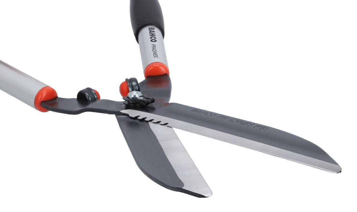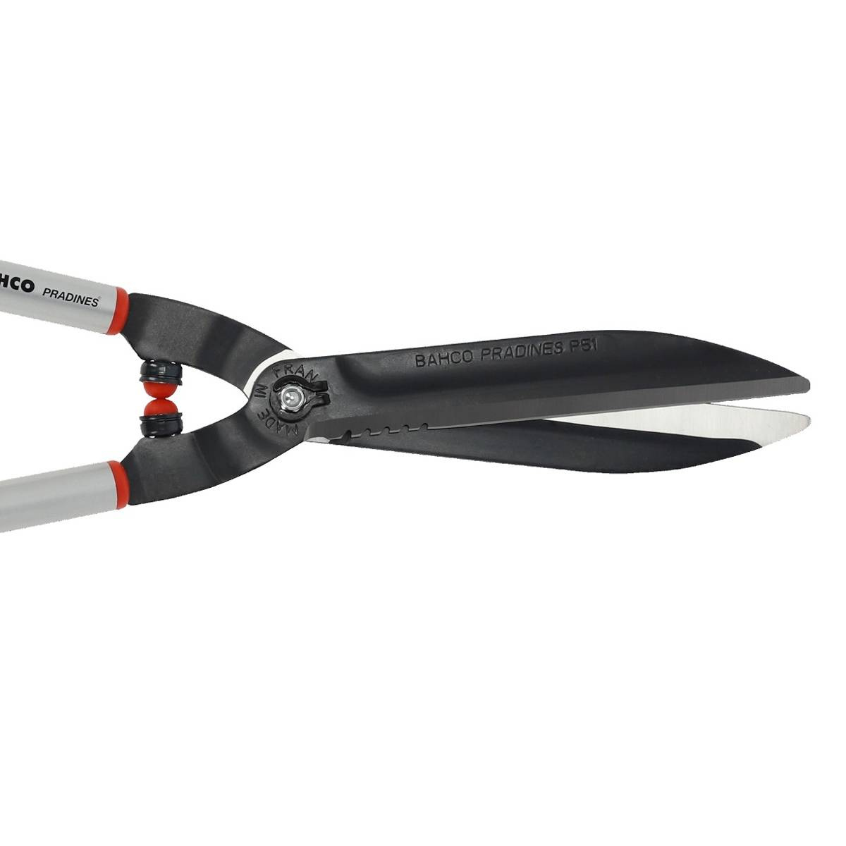 Nożyce do żywopłotu Bahco P51-SL zostały zaprojektowane oraz stworzone do profesjonalnych zastosować w parkach raz ogrodach. Rękojeści wykonane zostały z aluminium odpornego na odkształcenia, co zapewnia im wysoką trwałość oraz małą wagę, tym samym przekładając się na łatwe operowanie nożycami. Ostrza zostały odpowiednio zahartowane, pozwalając wykonywać płynne i czyste cięcia. Dla ułatwienia pracy z grubszymi gałęziami część krawędzi ostrza jest ząbkowana. Dla zwiększenia komfortu oraz pewności chwytu, rękojeści zostały pokryte gładkim tworzywem.
