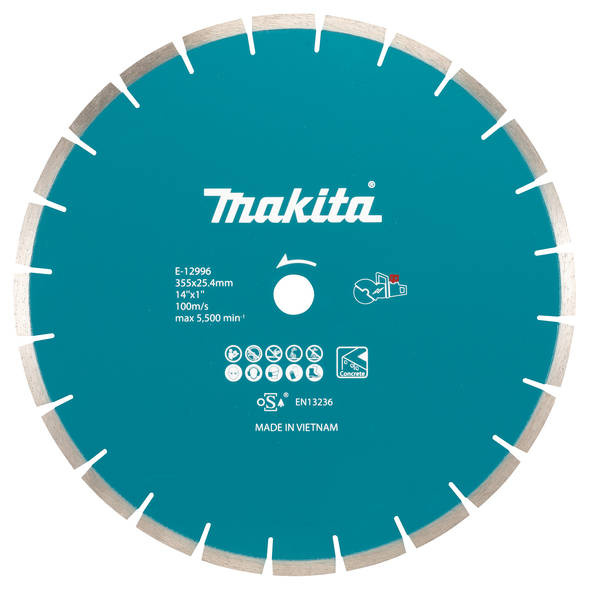 Tarcza diamentowa Makita E-12996 to segmentowa tarcza przeznaczona do profesjonalnego użytku z akumulatorową przecinarką CE001. Segmentowe szczeliny pozwalają na szybkie i chłodne cięcie. Spawana laserowo, co zapewnia trwałe połączenie. Sprawdzi się podczas pracy z utwardzanym betonem, cegłami oraz bloczkami betonowymi.