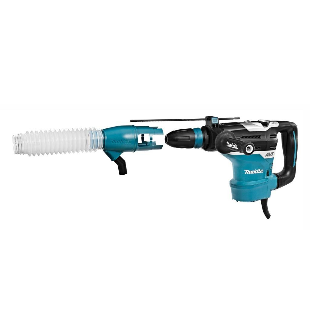 Młotowiertarka Makita HR4013CV to zasilane sieciowo elektronarzędzie, wyposażone w mocny silnik, który pozwala na niezwykle szybką pracę. Dzięki zastosowaniu nowej technologi antywibracyjnej AVT, maksymalna wartość wibracji z boczną rękojeścią osiąga 5.0 m/s2. Młotowiertarka HR4013CV wyposażona jest w wydajną elektronikę, zapewniającą stałą prędkość obrotową oraz miękki start na początku wiercenia. Dla ułatwienia ciągłej pracy zastosowane zostało pokrętło blokujące, dzięki czemu operator nie musi trzymać bez przerwy spustu urządzenia. Zastosowana regulacja prędkości zapewnia szersze zastosowanie elektronarzędzia podczas podkuwania.