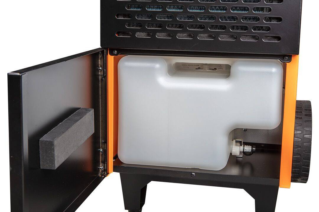 - Skuteczny przy pozbywania się wilgoci z pomieszczeń gospodarczych czy placów budowy.
