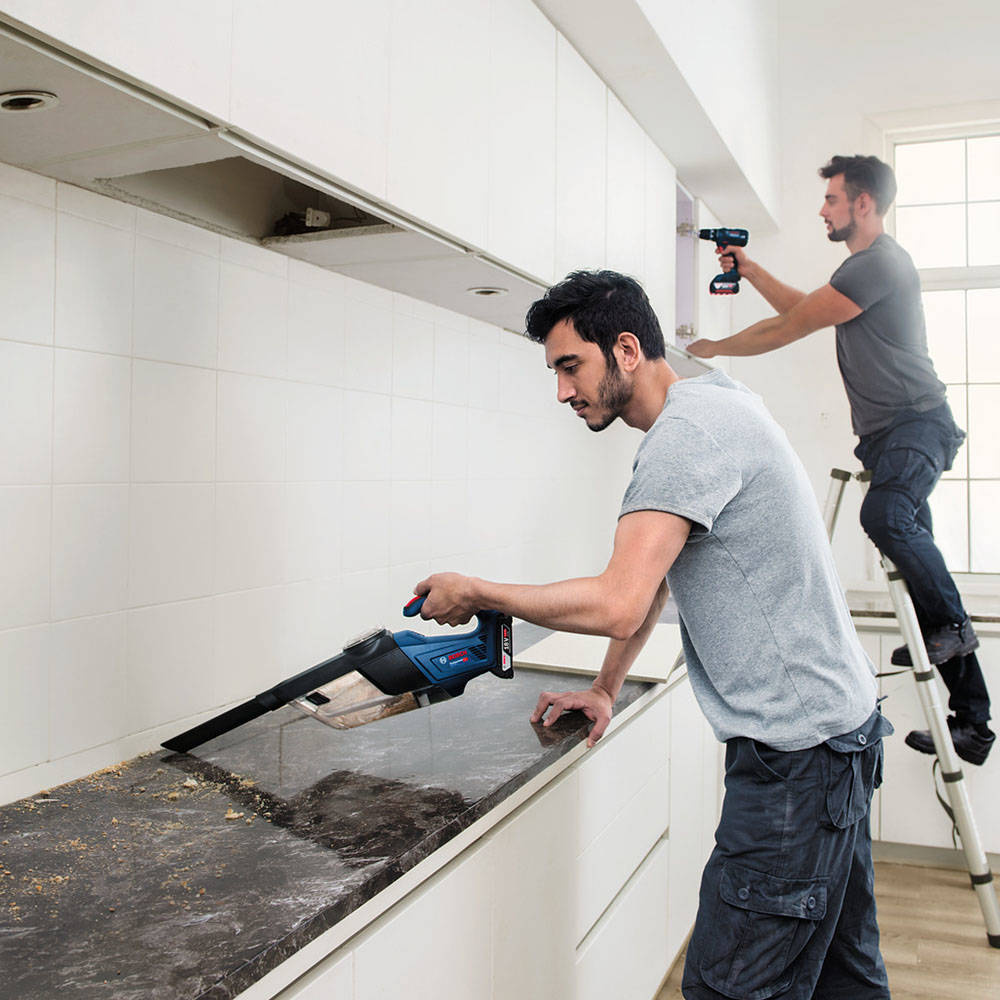 Bosch GAS 18V-1 to akumulatorowy odkurzacz przeznaczony do drobnych porządków podczas montażu mebli, sprzątania tapicerki samochodowej, domowych porządków i innych prac związanych z czyszczeniem powierzchni z brudu. Charakteryzuje się niewielkimi rozmiarami oraz maksymalnym podciśnieniem wynoszącym 60 mbar. Takie parametry pozwolą wessać kurz lub drewniany urobek z ciasnych zakamarków.