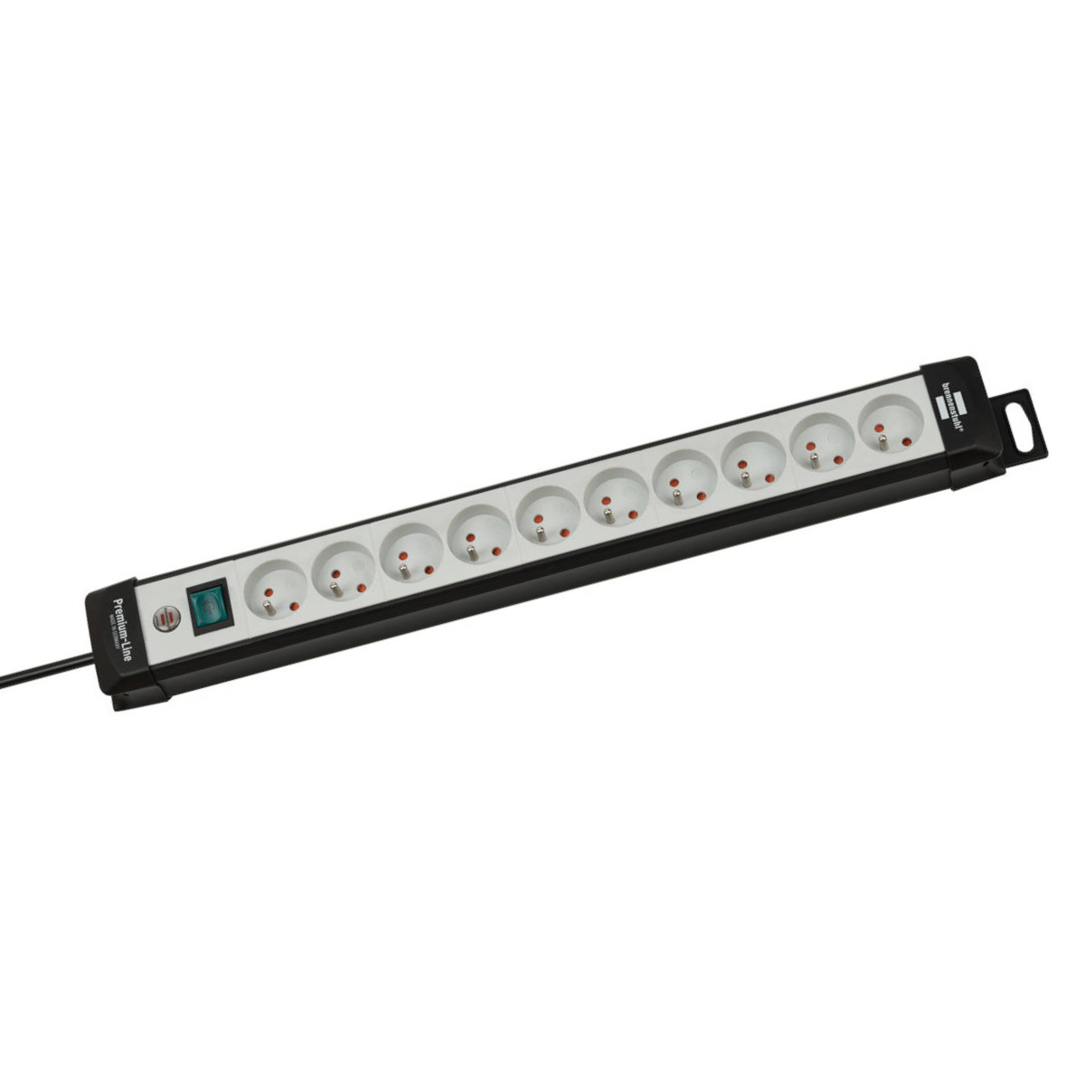 Listwa zasilająca Brennenstuhl 1951504100 z serii Premium-Line z 10 gniazdami umieszczonymi pod kątem 45° i przewodem o długości 3 metrów. Wyposażona w podświetlany wyłącznik bezpieczeństwa, dzięki czemu użytkownik wie, czy jest podłączona do prądu. Listwa może być przymocowana za pomocą śrub lub opasek kablowych dzięki specjalnemu systemowi, który można stosować obustronnie.