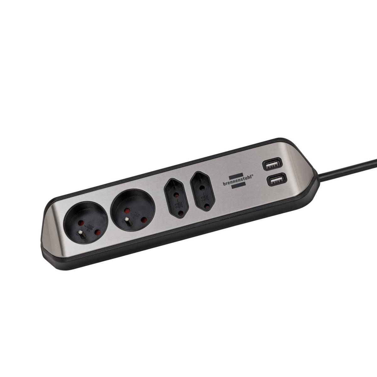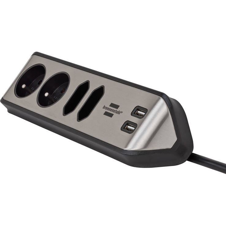 Listwa zasilająca narożna Brennenstuhl 1153594410 to kompaktowa listwa narożna, wykonana z wysokiej jakości tworzywa sztucznego odpornego na złamania oraz wysokiej jakości, eleganckiej powierzchni ze stali nierdzewnej. Kształt przedłużacza umożliwia przymocowanie jej jako nablatowego gniazdka za pomocą specjalnych podkładek samoprzylepnych. Wyposażona w dwa gniazda okrągłe, dwa gniazda płaskie oraz dwa porty USB.