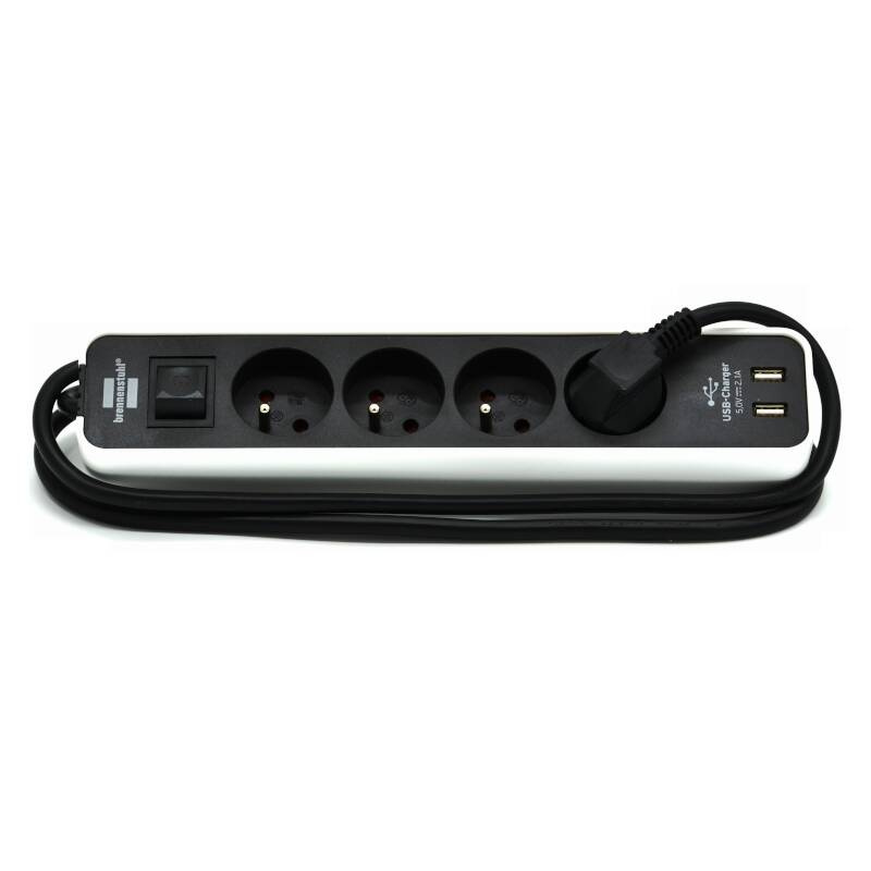 Listwa zasilająca Brennenstuhl 1153244026 z dwoma gniazdami USB 2A do szybkiego ładowania oraz czterema gniazdami okrągłymi umieszczonymi pod kątem 45° i przewodem o długości 1,5 metra. Wbudowany podświetlany, dwubiegunowy wyłącznik bezpieczeństwa gwarantuje możliwość wyłączenia listwy, bez konieczności odłączania jej od gniazdka sieciowego.