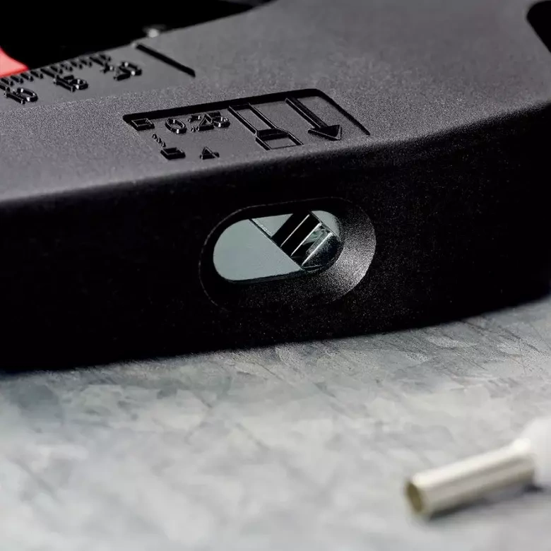 - Szybkie, precyzyjne zagniatanie pojedynczych tulejek kablowych zgodnie z DIN 46228 część 1 + 4, samonastawne w zakresie 0,25 – 4 mm² / 2 x 2,5 mm² – możliwość szybkiej zmiany pomiędzy różnymi rozmiarami