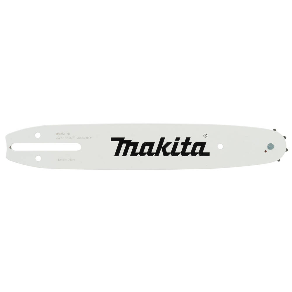Prowadnica łańcucha Makita 191T85-8 o długości 25 centymetrów, podziałce łańcucha 0,325" oraz szerokości rowka 0,43" (1,1 mm).