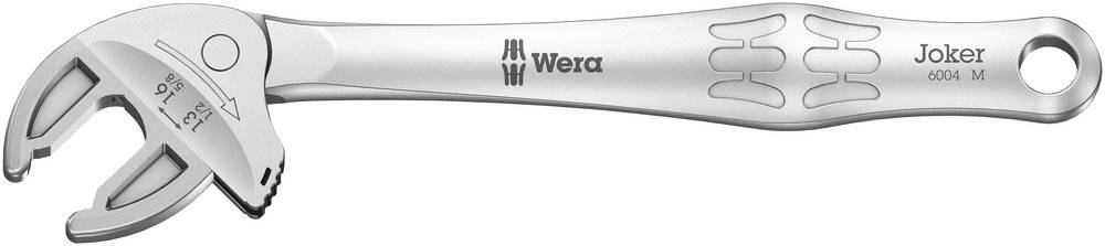 - Zestaw składający się z czterech kluczy Wera Joker 6004 z mechanizmem regulacji, pokrywa wszystkie wymiary metryczne w zakresie od 7 do 19 mm i calowe od 1/3" do 3/4"
