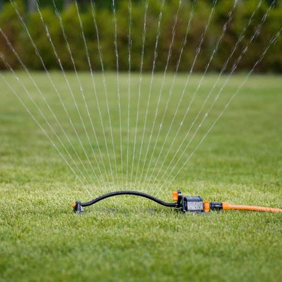 - Łatwa regulacja zasięgu i szerokości zraszania o wymiarach 16 x 17 m