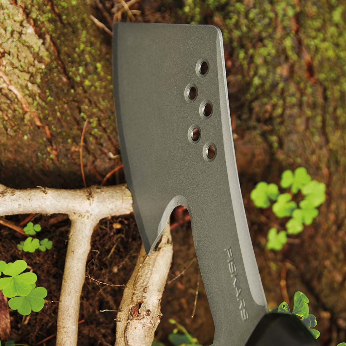 - Ostrze w kształcie toporka doskonałe do cięcia korzeni, winorośli, małych gałęzi i wiele więcej