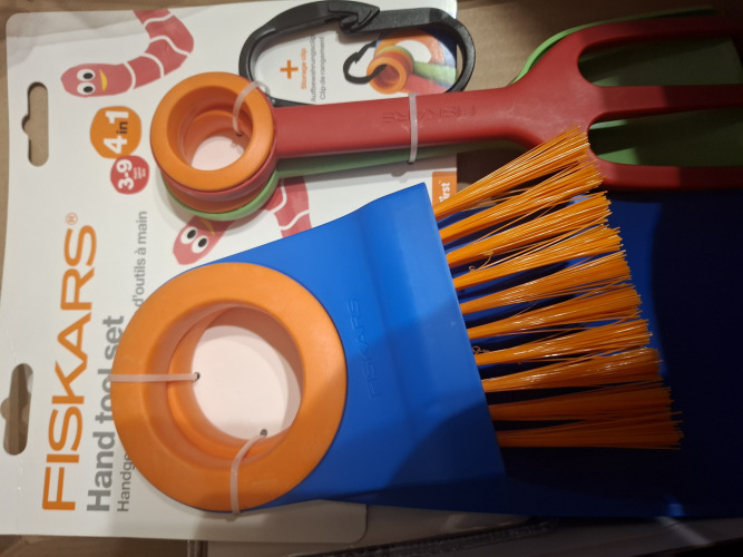 Zestaw narzędzi dziecięcych Fiskars 1062472 składa się z czterech wysokiej jakości narzędzi z zestawu MyFirsFiskars, który umożliwi dzieciom wykonywanie pierwszych zadań oraz pomagania nam w ogrodzie. Zaprojektowany w taki sposób, żeby pasował do małych rączek i wielkiej wyobraźni. Łopatka i kultywator mają dłuższe rączki, dzięki czemu nawet najmłodsi mogą nimi łatwo pracować, a solidne zęby kultywatora pomagają rozluźnić i napowietrzyć glebę. Szufelka z dużą głowicą ułatwia posługiwanie się dwiema rękami podczas wyrównywania gleby, a mała, poręczna szczotka ma mocne, elastyczne włosie do zamiatania i czyszczenia ścieżek czy innych małych przestrzeni. Dziecięce narzędzia Fiskars 1062472 wykonane zostały z trwałych materiałów wzmacnianych włóknami. Każde narzędzie ma miękkie, antypoślizgowe uchwyty, wyjątkowo duży otwór ułatwiający przechowywanie oraz zabawne, jasne kolory chętnie wybierane przez dzieci.