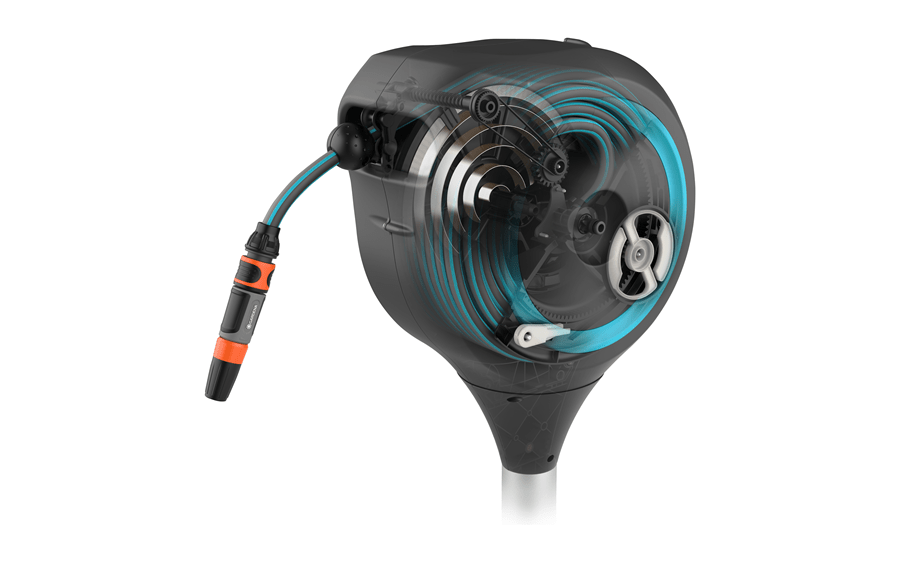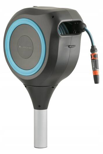 Bęben ogrodowy Gardena RollUp M, nr produktu Gardena 18614-20 to narzędzie zapewniające bezpieczne i oszczędzające miejsce przechowywanie węża ogrodowego, oferujące wygodne nawadnianie ogrodu średniej wielkości. Praktyczny bęben ogrodowy Gardena RollUp M mocowany jest do podłoża za pomocą śruby, montowanej w dowolnym, wybranym miejscu w ogrodzie. Bęben Gardena 18614-20 posiada wbudowaną blokadę zatrzymującą wąż w krótkich odstępach, maksymalnie ułatwiając posługiwanie się - w chwili zaprzestania rozwijania - wąż zostanie natychmiast zablokowany na danej długości. Bęben ogrodowy Gardena RollUp M posiada prowadnicę, zapewniająca układanie węża w taki sposób, by ten nie plątał się ani nie zwijał. Konstrukcja wolnostojącego bębna ogrodowego Gardena 18614-20 umożliwia obracanie się w zakresie 360°, dzięki czemu gwarantuje maksymalną swobodę rozwijania i nawadniania ogrodu.