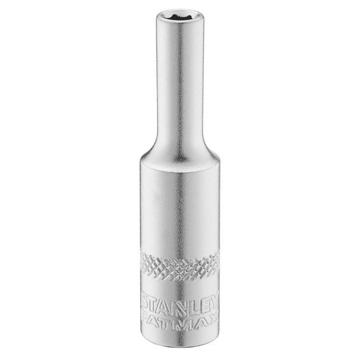 Nasadka długa 1/4" Stanley FMMT17965-0 w rozmiarze 13 milimetrów przeznaczona jest do pracy z kluczami typu grzechotka z mocowaniem ćwierć cala. Wykonana z wysokiej jakości, kutej i odpornej na korozję stali chromowo-wanadowej cechuje się wysoką wytrzymałością oraz trwałością. Wsparta technologią Maxidrive, która maksymalizuje kontakt między nasadką i śrubą. Widoczny rozmiar z boku końcówki zapewnia łatwą i szybką identyfikacją. Zwężająca się konstrukcja pozwala na łatwiejszy dostęp w trudno dostępne i wąskie miejsca.