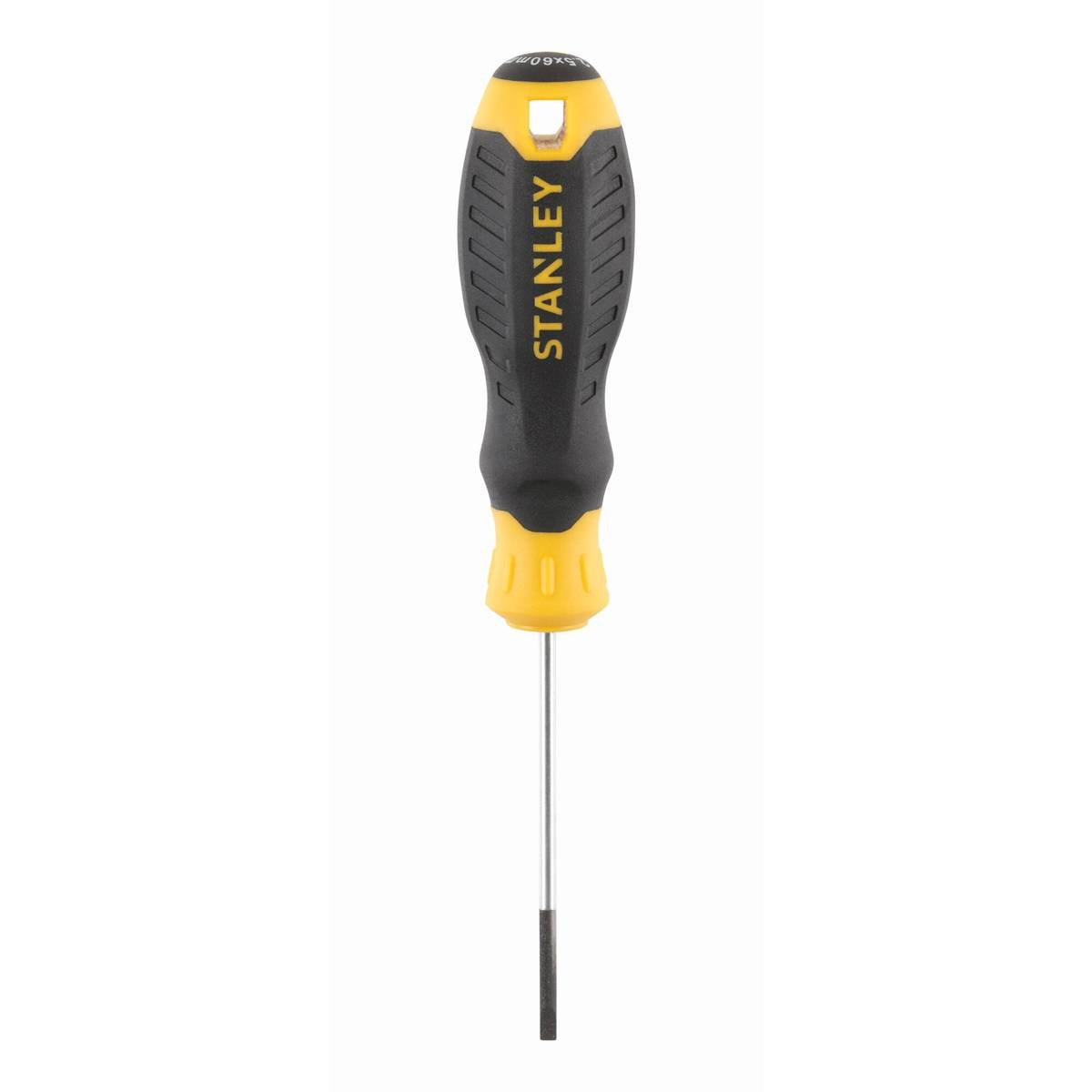 Śrubokręt Stanley STHT16151-0 to wkrętak płaski o wymiarach 60 x 2,5 z czernioną, magnetyczną końcówką, zakończony wygodną rękojeścią CUSHION GRIP™ o zwiększonej średnicy, która zapewnia odpowiednią ergonomię oraz umożliwia osiąganie wysokiego momentu obrotowego podczas pracy. Dzięki wyraźnym oznaczeniom na końcówce rękojeści użytkownik w szybki odnajdzie odpowiedni wkrętak.