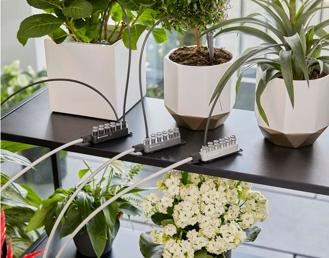 Zestaw do nawadniania Gardena 13366-20 to system wymagający zasilania z sieci elektrycznej, bez podłączania do kranu. Zestaw do nawadniania Gardena 13366-20 za pomocą kroplowników zapewnia trzy możliwości dozowania wody, umożliwiając maksymalnie nawadnianie do aż 36 roślin domowych. Zestaw Gardena 13366-20 do nawadniania podczas urlopu zawiera wszystkie niezbędne elementy i jest niemal natychmiastowo gotowy do pracy.