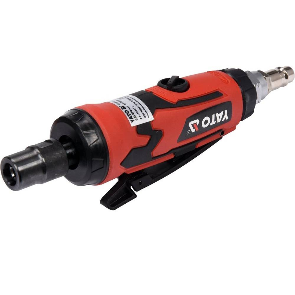 Szlifierka pneumatyczna prosta Yato YT-09633 zasilana jest za pomocą strumienia sprężonego powietrza pod ciśnieniem. Swoje zastosowanie znajdzie w serwisach motoryzacyjnych oraz w przemyśle. Ultra lekkie narzędzie o wadze 330 gram wyposażone jest kompozytowy korpus, który zwiększa wygodę użytkowania. Zastosowana regulacja prędkości umożliwia dostosowanie urządzenia do obrabianego materiału. Maksymalna prędkość pracy zastosowanego osprzętu wynosi 25 000 obrotów na minutę.