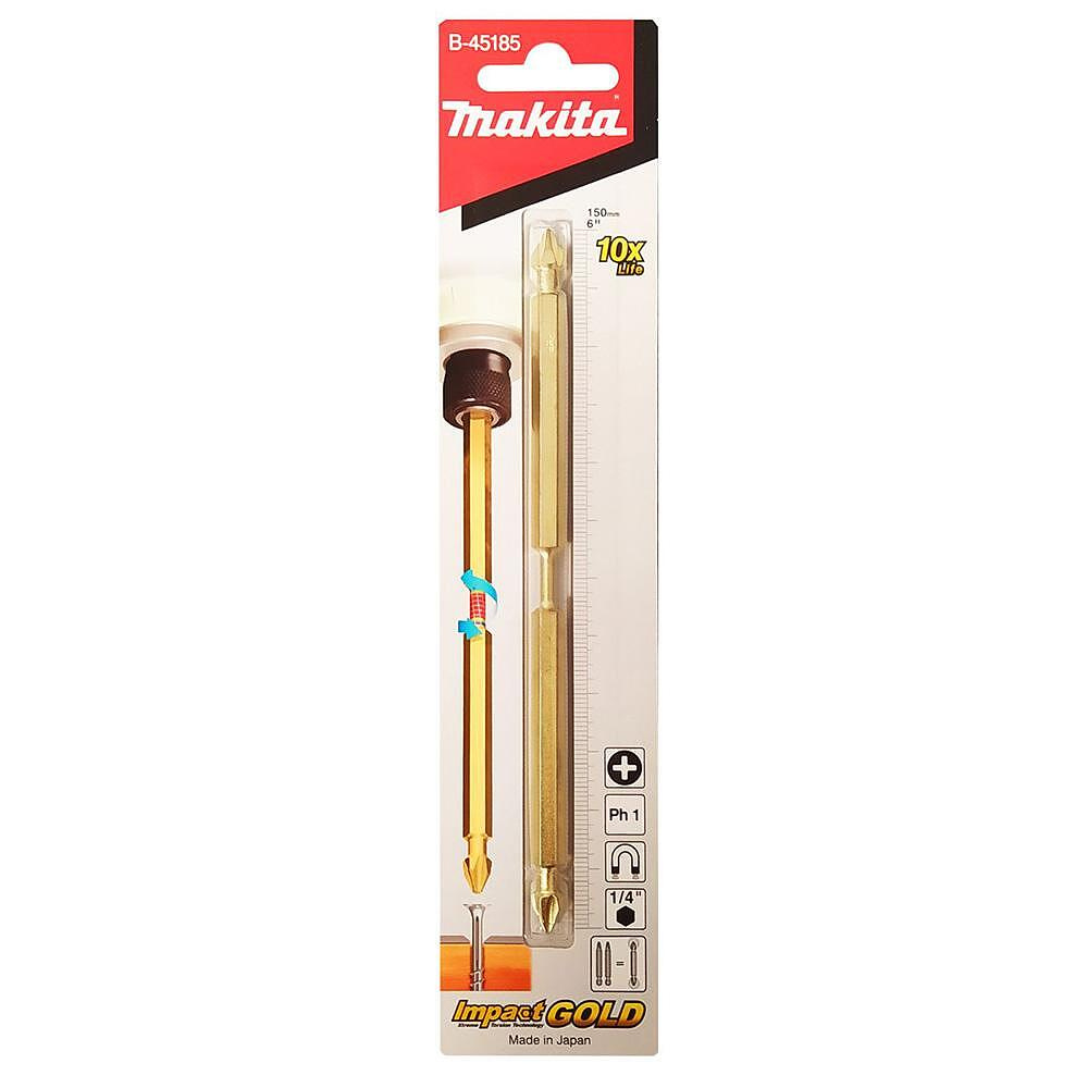 Długa podwójna końcówka wkrętakowa PH1 Makita B-45185 to bit o długości 150 mm, do użytku z wkrętarkami.