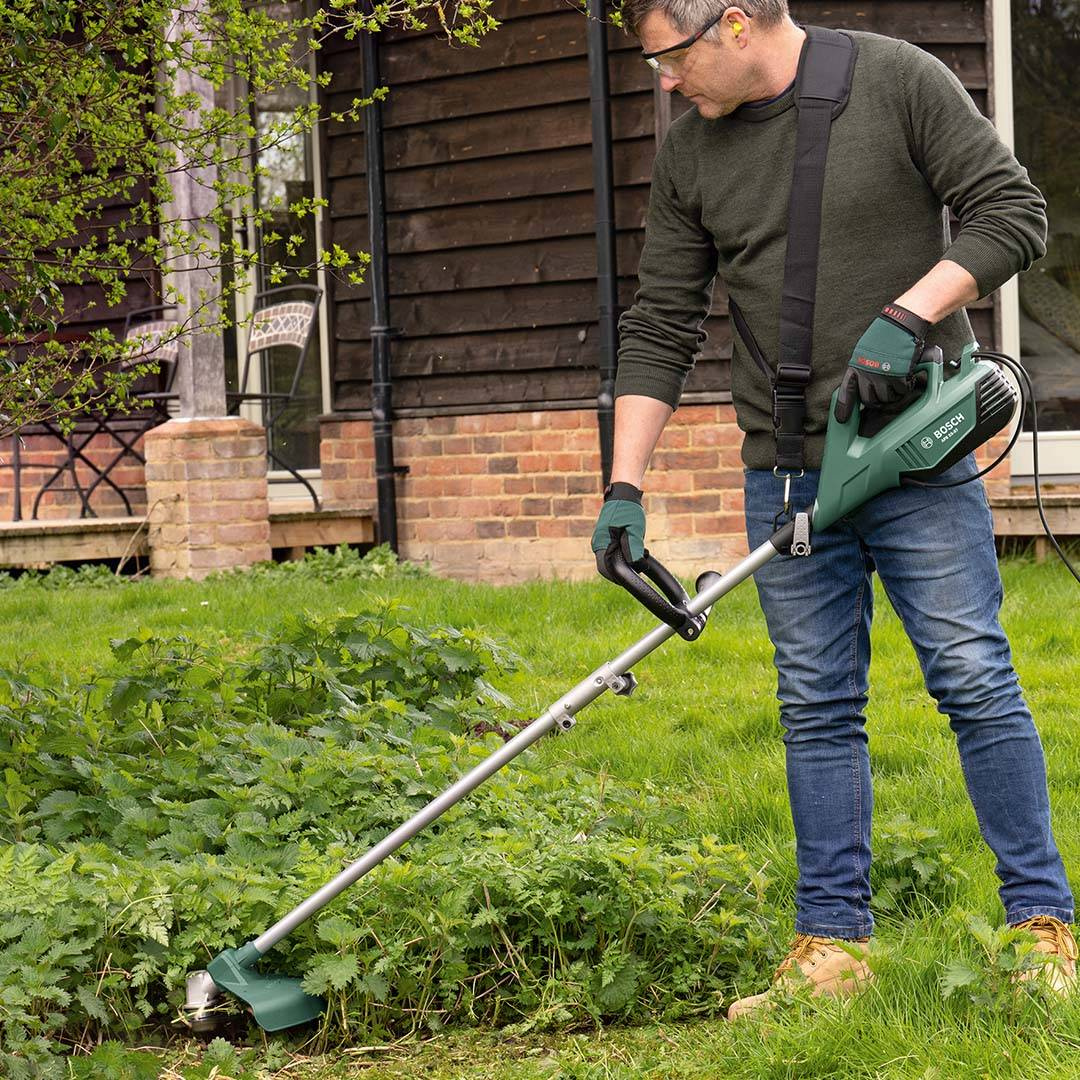 Bosch AFS 23-37 to kosa elektryczna z wydajnymi silnikiem o mocy 1000W. Kosą spalinową można ciąć zarówno grubą trawę jak i zdrewniałe łodygi chwastów. W zależności od rodzaju koszonej zieleni można zastosować nóż lub nicią. Kosa Bosch AFS 23-37 jest dobrze wyważona oraz posiada regulowaną rękojeść, dzięki której każdy użytkownik może dostosować kąt pracy do własnych preferencji.