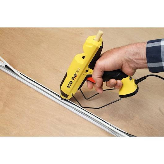 Jeżeli przez 30 minut spust nie zostanie naciśnięty, pistolet rozłącza ogrzewanie, przechodząc w tryb hibernacji. Pistolet do kleju Stanley Fatmax PRO GR100R wyposażony jest we wskaźnik temperatury LED. Kolor czerwony oznacza temperaturę grzałki poniżej 170°C. Zielony sygnalizuje, że pistolet jest gotowy do pracy, a temperatura jest wyższa niż 170°C. Pistolet przeznaczony jest do wkładów klejowych o średnicy 11 mm.