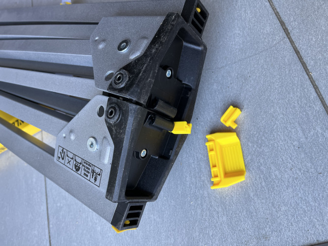 Kobyłki można spiąć razem i transportować jako parę, a metalowy pręt ułatwia mocowanie. Gumowa podkładka antypoślizgowa powoduje wytworzenie się tarcia na powierzchni podczas cięcia.