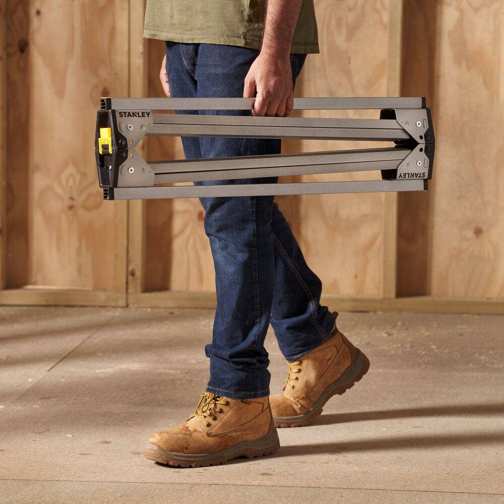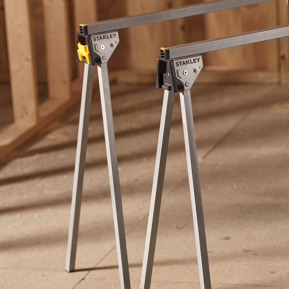 Kobyłki Stanley metalowe (2 szt.) to niezastąpione rozwiązanie, które może być wykorzystywane w wielu pracach warsztatowych. Składane nogi umożliwiają szybką i łatwą konfigurację i ich rozkładanie. Cechują się solidną i stabilną konstrukcją, umożliwiającą podparcie do 340 kg na parę.