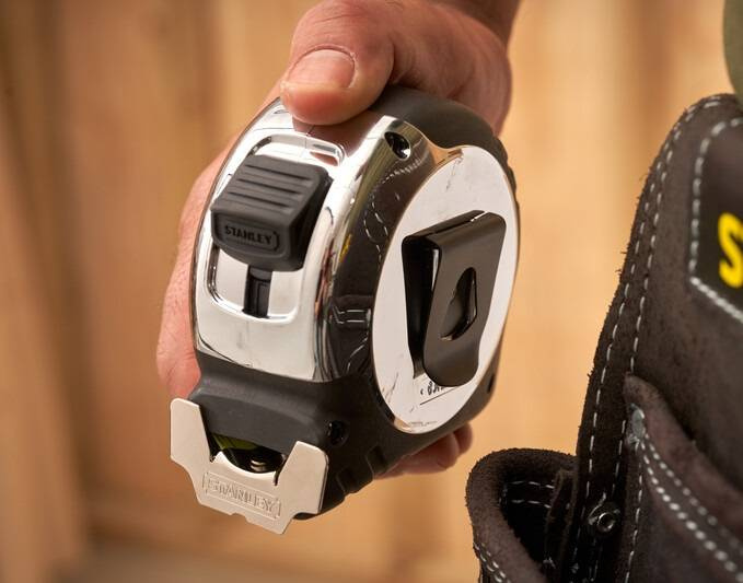 Bimateriałowa i metalizowana obudowa miary Stanley Fatmax 0-33-897 jest ergonomiczna i wygodna w użyciu. Zaczep mierniczy mocowany jest na 3 nity, co jest o 40% bardziej skuteczne, niż mocowanie na dwa nity. Umożliwia precyzyjny pomiar wewnętrzny i zewnętrzny. Miara Stanley Fatmax zwijana jest miarą o 2 klasie dokładności. Posiada praktyczny zaczep do paska.