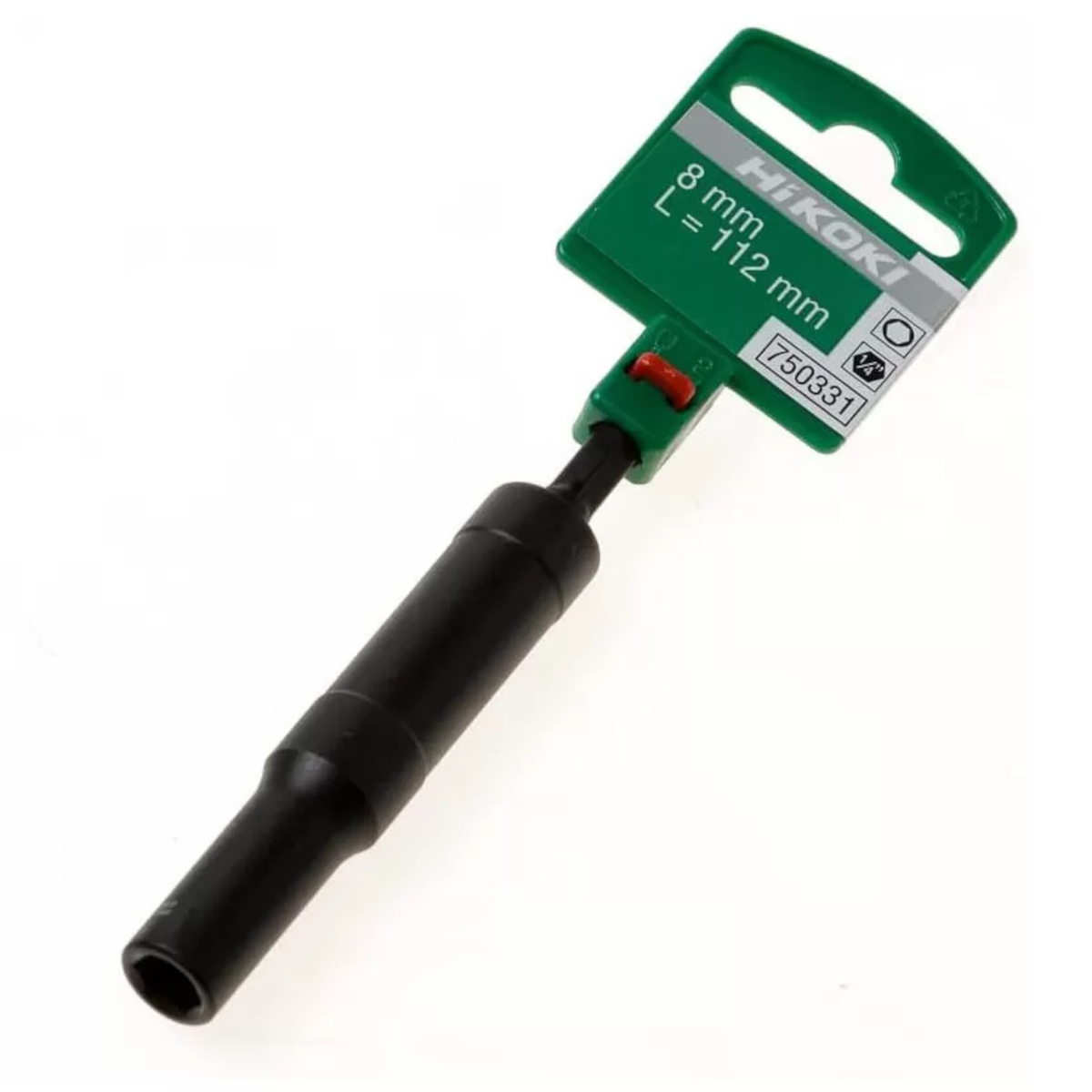 Przegubowa nasadka udarowa Hikoki 750331 w rozmiarze 8 milimetrów i długości 112 milimetrów. Nasada mocująca 1/4" HEX pozwala zastosować nasadkę wśród wiertarko-wkrętarek oraz zakrętarek udarowych.