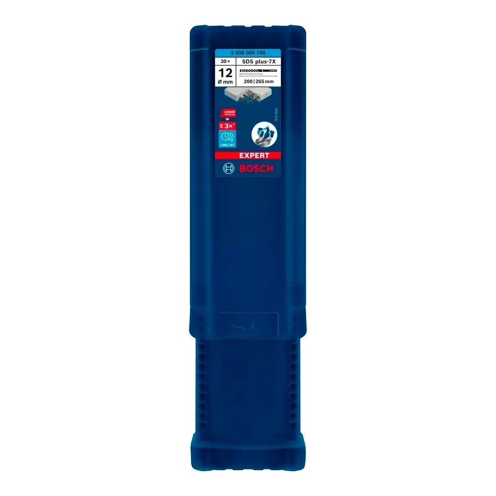 Wiertło do betonu 12x200x265 mm SDS Plus-7X Bosch 2608900190 (30 szt.) to zaawansowany osprzęt przeznaczony do najbardziej wymagających prac budowlanych, szczególnie do wiercenia w betonie i betonie zbrojonym. Model ten wyposażono w technologię Bosch Carbide Technology i czteroostrzową końcówkę z węglika spiekanego, co zapewnia wyjątkową trwałość, precyzję i niezawodność. Dzięki specjalnemu procesowi spawania głowicy wiertło jest odporne na pęknięcia i nie blokuje się podczas pracy w zbrojeniu. Zestaw zawiera 30 sztuk wierteł, co czyni go idealnym wyborem dla profesjonalistów wymagających dużej wydajności podczas instalacji i mocowań.
