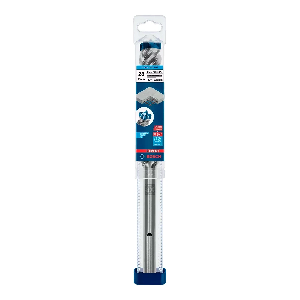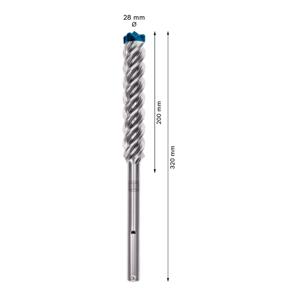 Wiertło udarowe SDS Max-8X 28x200x320 mm Bosch 2608900247 to profesjonalne rozwiązanie do wymagających zastosowań w branży budowlanej. Dzięki zaawansowanej technologii Bosch Carbide Technology oraz w pełni węglikowej, czteroostrzowej głowicy, wiertło jest niezwykle wytrzymałe i efektywne w wierceniu w betonie oraz betonie zbrojonym. Specjalny proces spawania końcówki zapewnia trwałość nawet podczas najcięższych prac, takich jak wiercenie otworów na kotwy czy przedłużenia prętów zbrojeniowych. Wiertło SDS Max-8X wytrzymuje do trzech razy dłużej niż standardowe wiertła, co zmniejsza konieczność częstej wymiany osprzętu i pozwala na płynną pracę bez przestojów.
