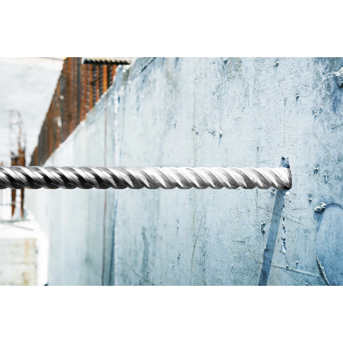 - Wierć w betonie zbrojonym używając czteroostrzowej, w pełni węglikowej głowicy
