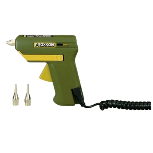 Pistolet do kleju Proxxon PR28192 umożliwi szybkie klejenie drewna, metalu, tworzyw sztucznych, szkła, tektury i wielu innych materiałów. Rozgrzany klej stygnie w około dwie minuty, trwale łącząc ze sobą klejone elementy. Mechaniczny podajnik kleju zapewnia precyzję w jego podawaniu. Pistolet ma krótki czas nagrzewania oraz termistor (PTC) zapewniający stałą temperaturę pracy na poziomie 200°C