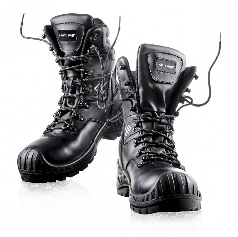 Trzewiki wysokie Lahti Pro L3030445 to wysokie buty w rozmiarze 45 z wzmocnioną częścią tylną za pomoc tworzywa TPR. Podszewka wykonana została z dzianiny siatkowej, z wymienna wyściółką. Podeszwa wykonana z dwugęstościowego poliuretanu odpornego na oleje napędowe oraz o właściwościach antypoślizgowych.