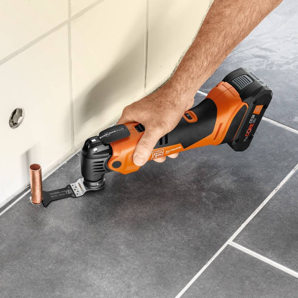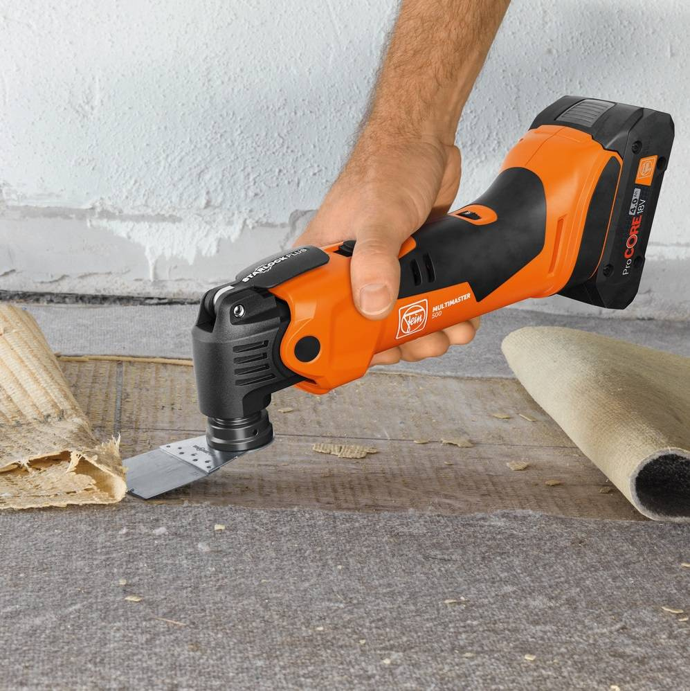 Narzędzie wielofunkcyjne Fein MULTIMASTER AMM 500 PLUS TOP 4.0 AH AS to akumulatorowe urządzenie Multitool pozwalające na wykonanie rozmaitych zadań w zakresie zabudowy i renowacji. Ponad 30 akcesoriów umożliwia piłowanie w drewnie i metalu, szlifowanie, przecinanie płytek i wykonanie innych prac warsztatowych i remontowych.