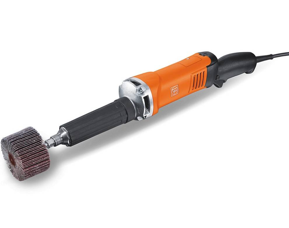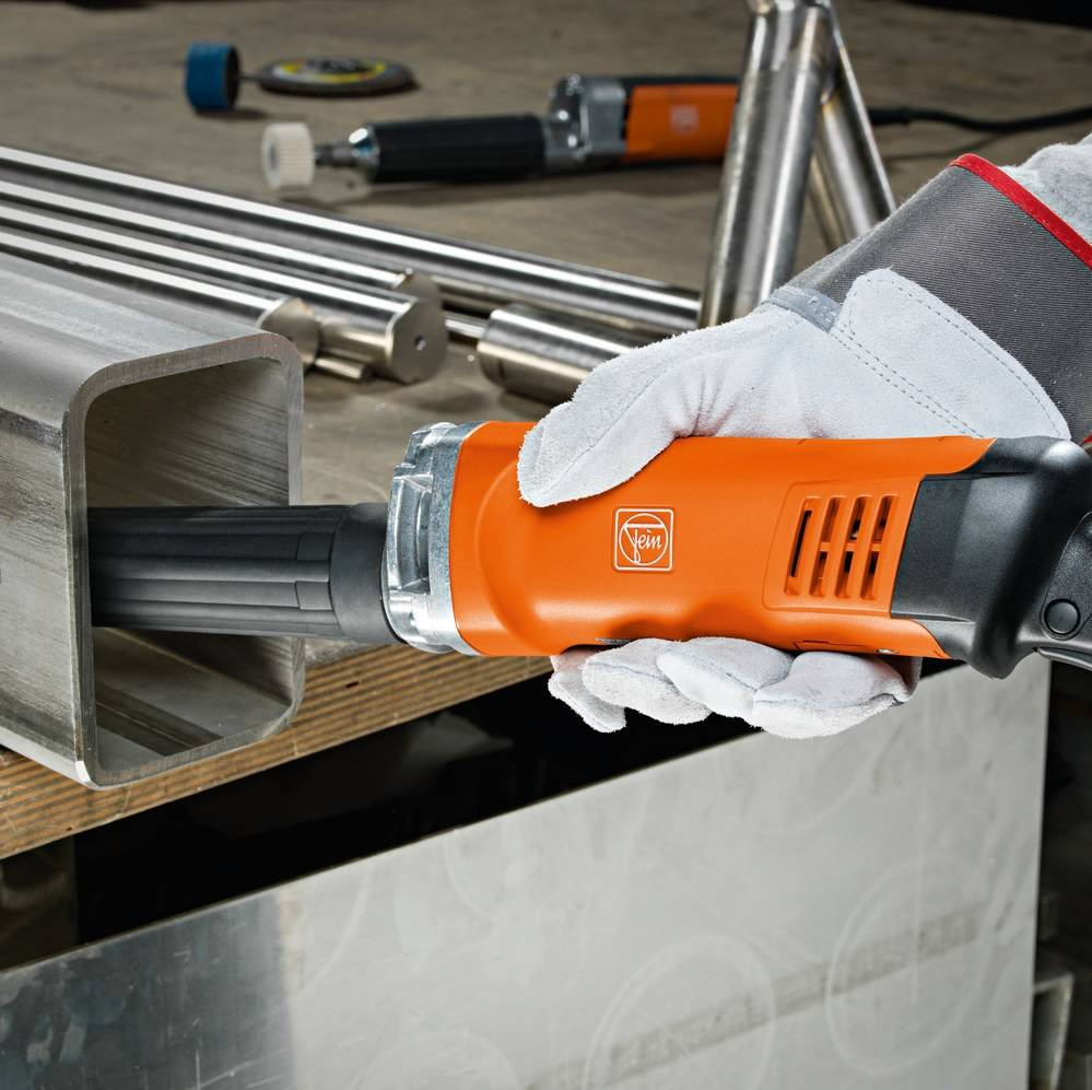 Specjalna tuleja zaciskowa z kołnierzem chroni obrabiany element przed uszkodzeniem oraz ześlizgnięciem się klucza w trakcie wymiany. Silnik i elektronikę w szlifierce prostej Fein GSZ 11-90 PERL zabezpieczono przed działaniem pyłu metalowego, wydłużając tym samym żywotność urządzenia. Zmienna prędkość obrotowa pozwala na zastosowanie rozmaitych narzędzi.