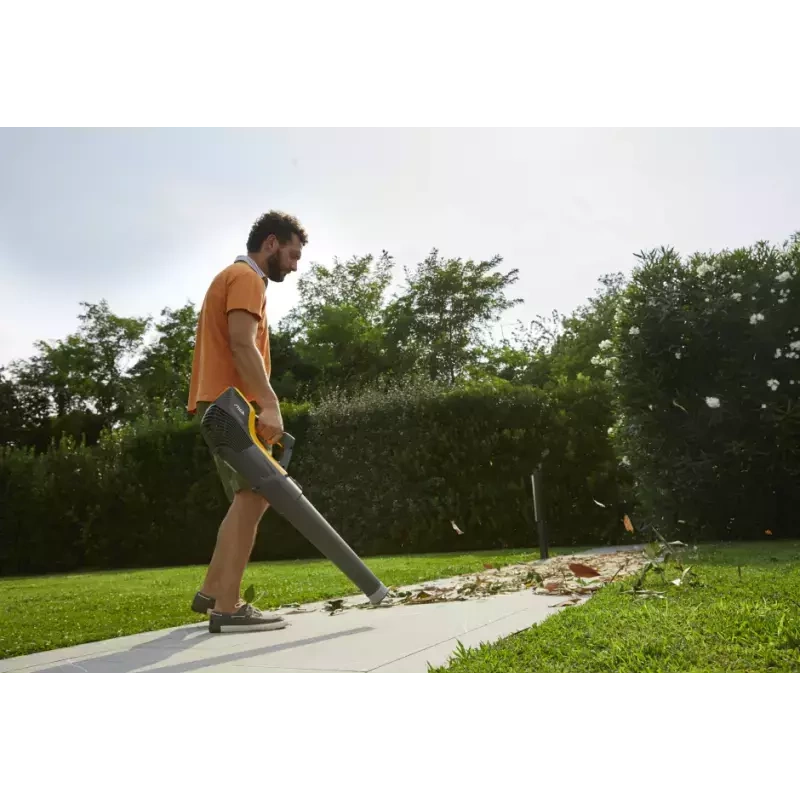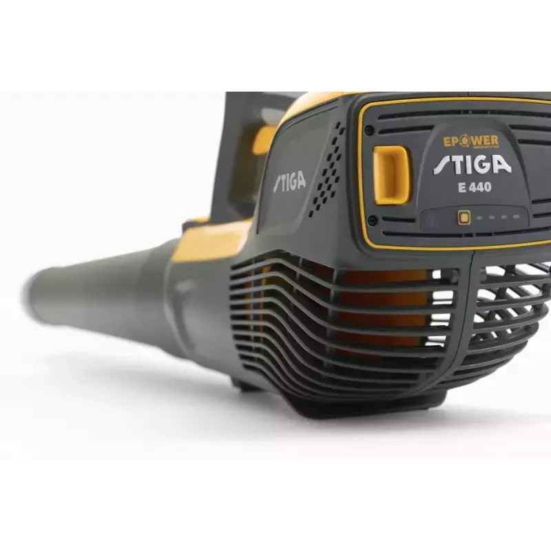 Dmuchawa do liści Stiga BL 500e to bezprzewodowa dmuchawa z zasilaniem akumulatorowym, o napięciu zasilania 48V. Dmuchawa została zaprojektowana z myślą o szybkim sprzątaniu, bez emisji szkodliwych spalin. Narzędzie oferuje zmniejszoną intensywność wibracji i dużą redukcję hałasu, względem dmuchaw spalinowych. Dzięki zoptymalizowanej konstrukcji silnika oraz wirnika maszyny - urządzenie oferuje maksymalną prędkość powietrza 55 m/s, co zapewnia szybkie i skuteczne czyszczenie różnych powierzchni. Dmuchawa jest wyposażona w intuicyjny panel sterowania umieszczony na uchwycie, który umożliwia wybór prędkości wylotowej powietrza. Dmuchawa akumulatorowa Stiga BL 500e dostarczana jest w zestawie z akumulatorem o pojemności 2 Ah oraz pojedynczą ładowarka.