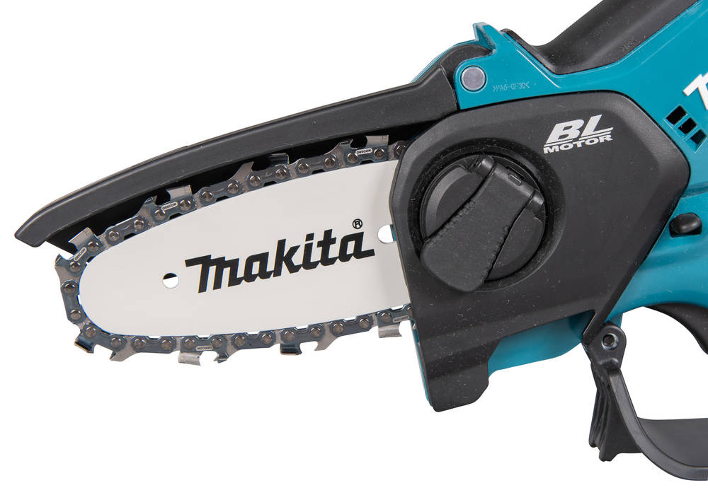 Pilarka do gałęzi Makita DUC101SF01 to jednoręczne elektronarzędzie, przeznaczone do przecinania gałęzi w ogrodach oraz sadach. Wyposażone w wydajny, bezszczotkowy silnik, zasilany znacznie bardziej wydajnym, 18 V akumulatorem z serii LXT, który zapewnia prędkość łańcucha 8 metrów na sekundę. Zbiornik o pojemności 55 mililitrów zapewnia ciągłość smarowania łańcucha, co zapewnia dłuższą żywotność mechanizmu tnącego. Lekka i prosta w użyciu, zabezpieczona przed wilgocią i pyłem powstającym podczas pracy, dzięki czemu poradzi sobie podczas pracy z mokrym materiałem.