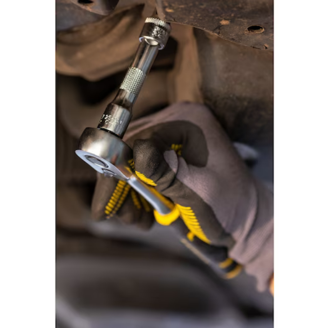 Grzechotka Stanley Fatmax FMMT82677-0 to precyzyjna i szybka grzechotka z gruszkową głowicą, wyposażoną w 120 zębów z mechanizmem zapadkowym ze skokiem 3°. Pozwala to na dostęp i pracę w ciaśniejszych przestrzeniach. Wykonana ze stali chromowo-wanadowej, zapewniającej jej wyjątkową wytrzymałość. Nisko profilowa dźwignia przełącznika zapobiega przypadkowemu przełączeniu oraz umożliwia pracę za pomocą jednej ręki. Duży płaski przycisk na główce pozwala na szybką wymianę nasadek.