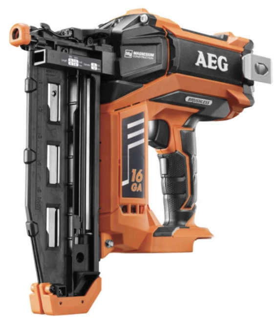 - Akumulatorowa gwoździarka B16N18-0 AEG. Częstotliwość cyklu (godz.): 2/sec. Kąt magazynka: Straight. Napięcie (V): 18. Pojemność magazynka: 105. Rozmiary gwoździ: 19-65mm. Typ gwoździa (mm): 1,6