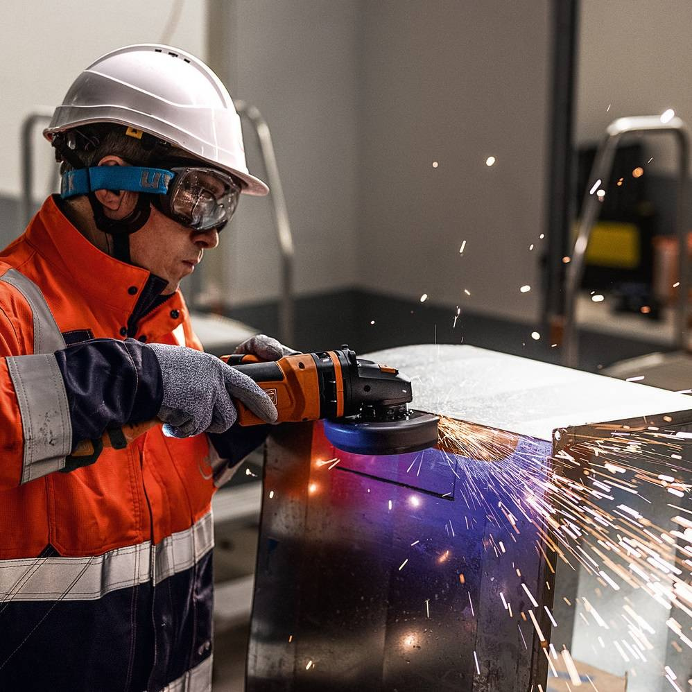 Oprócz bezpieczeństwa szlifierka kątowa Fein CCG 18-125-10 PD-SEC AS gwarantuje także optymalną moc i perfekcyjne parametry ergonomii, co pozwala na łatwą obsługę i komfortowe użytkowanie w każdej sytuacji roboczej. Urządzenie zapewnia taką moc, jak jego podobne, sieciowe odpowiedniki o mocy 1080 W.