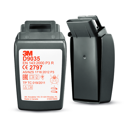 Filtr 3M D9035F to filtr przeciwpyłowy w twardej i jednocześnie lekkiej obudowie przeznaczony do pracy w trudnych warunkach, gdzie liczy się wysoki poziom ochrony i łatwa dekontaminacja. Obudowa chroni filtr przed iskrami oraz działaniem wysokiej temperatury. D9035 współpracuje z maskami z serii HF-800 oraz HF-800SD dzięki złączu SecureClick. Jest to nowoczesne rozwiązanie, które charakteryzuje się prostotą i pewnością montażu. Ponadto filtry zostały tak zaprojektowane, że po zamocowaniu nie ograniczają pola widzenia. Złącze działa jak mechanizm zapięcia pasów bezpieczeństwa, wystarczy włożyć zatrzask filtra do gniazda maski i przyciskać elementy złączem do siebie aż do usłyszenia kliknięcia, które oznacza bezpieczną i prawidłową instalację filtra. Filtr jest typu P R, klasy trzeciej (P3 R). Oznacza to że filtr służy do filtrowania cząsteczek stałych o wysokiej toksyczności z NDS <0,05mg/m3 ze skutecznością 99,95%. Dodatkowe oznaczenie R (reusable) oznacza że filtr można wykorzystywać więcej niż jeden raz (do zapchania filtru). Przed użyciem należy sprawdzić datę ważności. W przypadku innych ograniczeń użytkowania należy zapoznać się z informacjami dla użytkownika dostarczonymi z produktami.