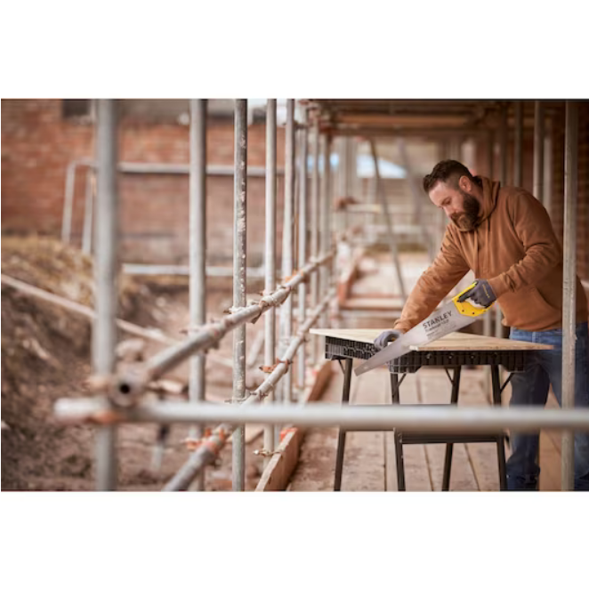 Piła uniwersalna Stanley STHT1-20352 charakteryzuje się hartowanym indukcyjnie ostrzem o długości 550 milimetrów z 8 zębami na cal. Trzy punktowe, potrójnie szlifowane zęby umożliwiają szybkie i wydajne cięcie, dzięki działaniu zarówno w przód, jak i tył. Ostrze i rękojeść spawane ultra dźwiękowo, zapewniając trwałe połączenie. Piła sprawdzi się podczas obróbki takich materiałów, jak twarde drewno, płyty wiórowe i OSB oraz piankowe płyty izolacyjne. Bi-materiałowa rękojeść zapewnia pewny chwyt oraz wysoki komfort podczas pracy.