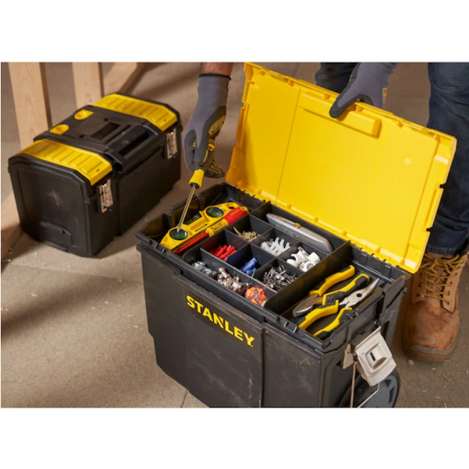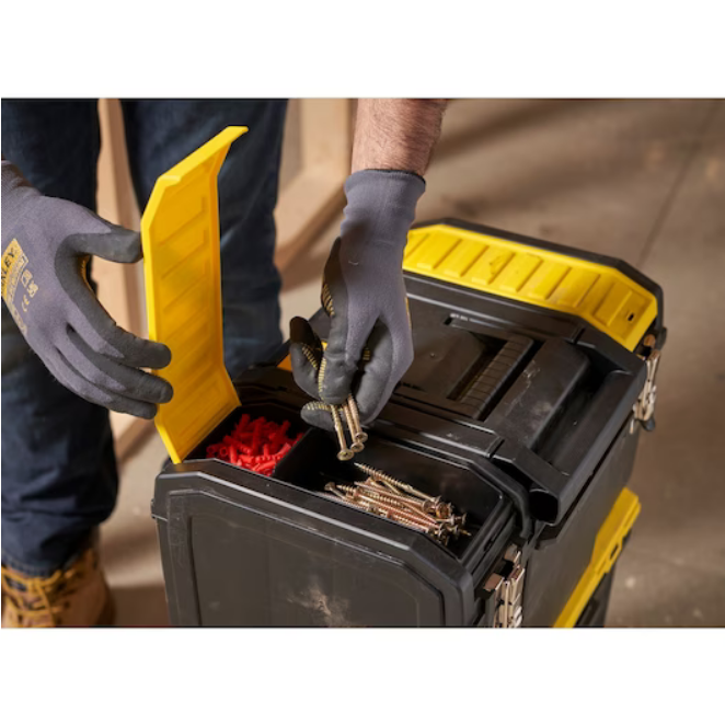 Skrzynie narzędziowe 2 w 1 Stanley 1-70-327 to mobilne, trój-segmentowe centrum pracy pozwalające wygodny transport narzędzi. Górny segment w postaci skrzyni z organizerami umożliwi przechowywanie drobniejszych elementów, natomiast dolny sprawdzi się w transporcie większych narzędzi ręcznych i elektronarzędzi. Środkowy segment umożliwi przechowywanie drobnych narzędzi, akcesoriów i osprzętu.