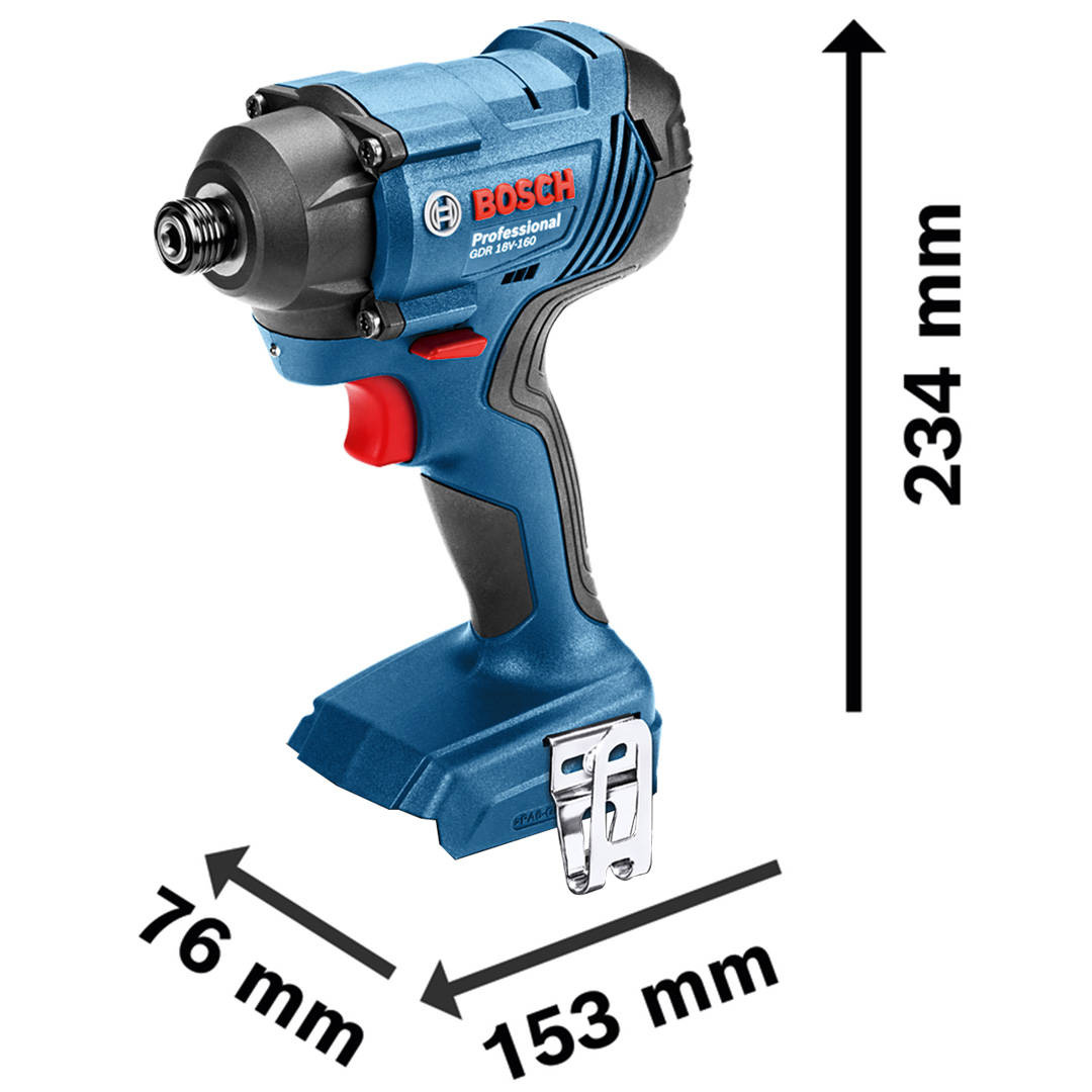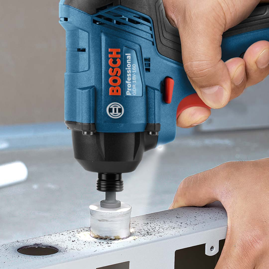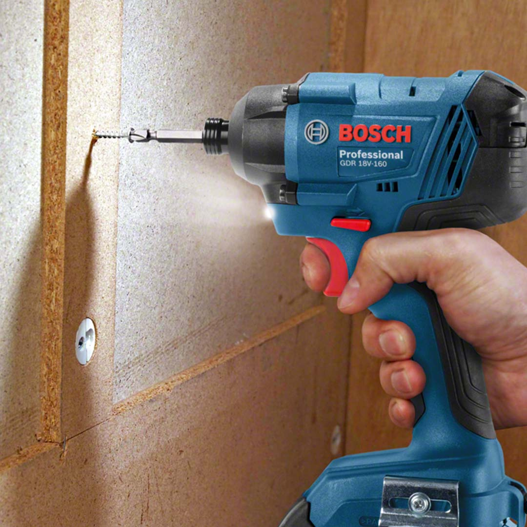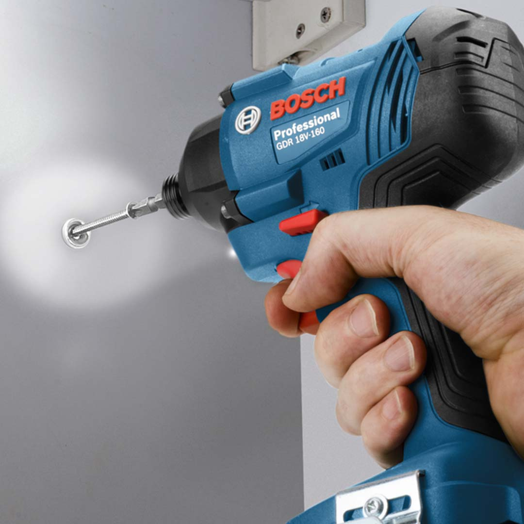 Zakrętarka udarowa Bosch GDR 18V-160, o symbolu Bosch 06019G5123 - to bezprzewodowe narzędzie akumulatorowe Bosch 18V, oferujące wysoki moment obrotowy na poziomie 180 Li z wysoką wartością częstotliwości udarów i prędkości obrotowej. Narzędzie zapewnia szybkie wkręcanie i wiercenie w metalu oraz w drewnie. Narzędzie wyposażone zostało w wydajny silnik szczotkowy, trwałą konstrukcję z wytrzymałą przekładnią, otwartą ramę silnika i systemem ochrony ogniw akumulatora, które zapewniają dłużą żywotność akumulatorów. Narzędzie w wariancie wyposażenia Bosch 06019G5123 dostarczane jest wraz z zestawem zasilającym.