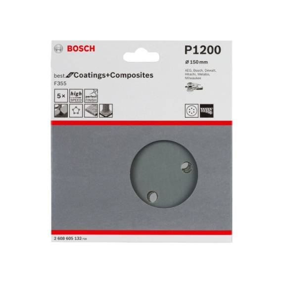 Papier ścierny do szlifierek mimośrodowych F355 Bosch 150 mm P1200 2608605132 5 szt.