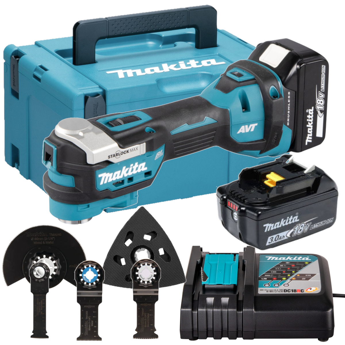 Narzędzie wielofunkcyjne Makita DTM52RFJX1 to innowacyjne wielofunkcyjne narzędzie oscylacyjne o wszechstronnym zastosowaniu, które napędza silnik bezszczotkowy. Narzędzie po wyposarzeniu w odpowiednie akcesoria, narzędzie to umożliwia przeprowadzanie różnych zadań, takich jak wykonywanie rowków w drewnie, przecinanie elementów ceramicznych, cięcie wzdłuż krawędzi i w narożnikach, szlifowanie w trudno dostępnych miejscach, usuwanie zaprawy murarskiej, przecinanie płytek ceramicznych, zdejmowanie materiałów z podłogi oraz usuwanie silikonu lub kitu z ram okiennych.
