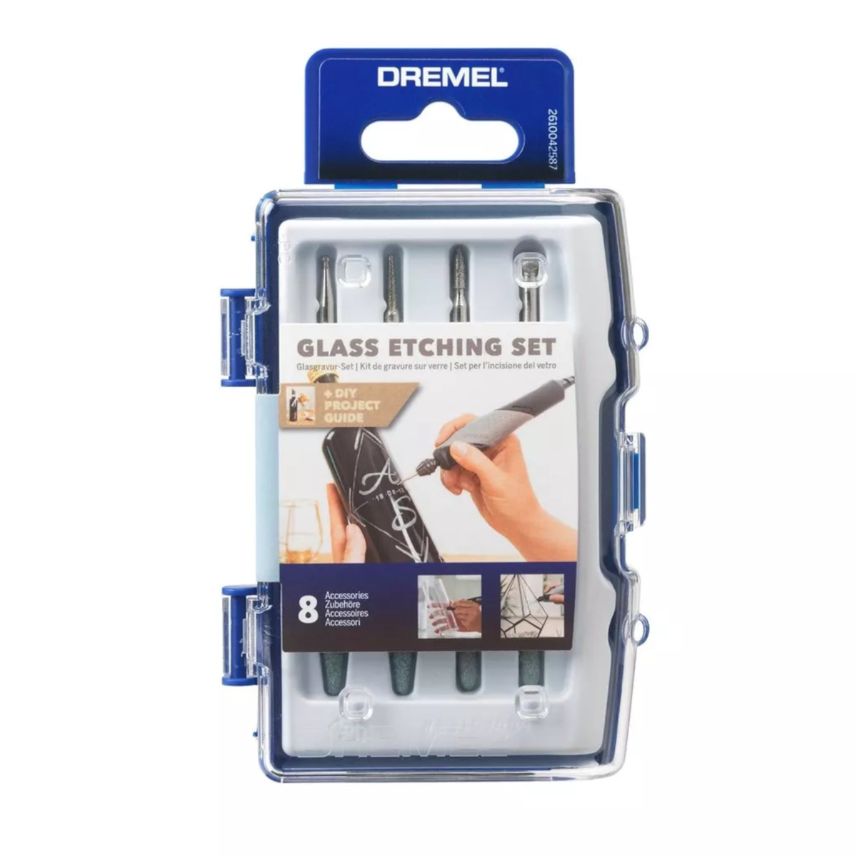 Zestaw do grawerowania szkła Dremel 2615C682JA to wysokiej jakości zestaw akcesoriów składający się z elementów pozwalających na kreatywne majsterkowanie z wykorzystaniem materiałów szklanych. Dzięki niemu wykonasz własne ozdoby świąteczne oraz stworzysz dekoracyjne podstawki pod kubki. Kolejnym doskonałym pomysłem na wykorzystanie zestawu będzie spersonalizowanie kieliszków, przez co stworzysz idealny upominek z grawerem. Za sprawą Dremel 2615C682JA sprawnie natniesz i wygrawerujesz dowolne powierzchnie wykonane z metalu i szkła.