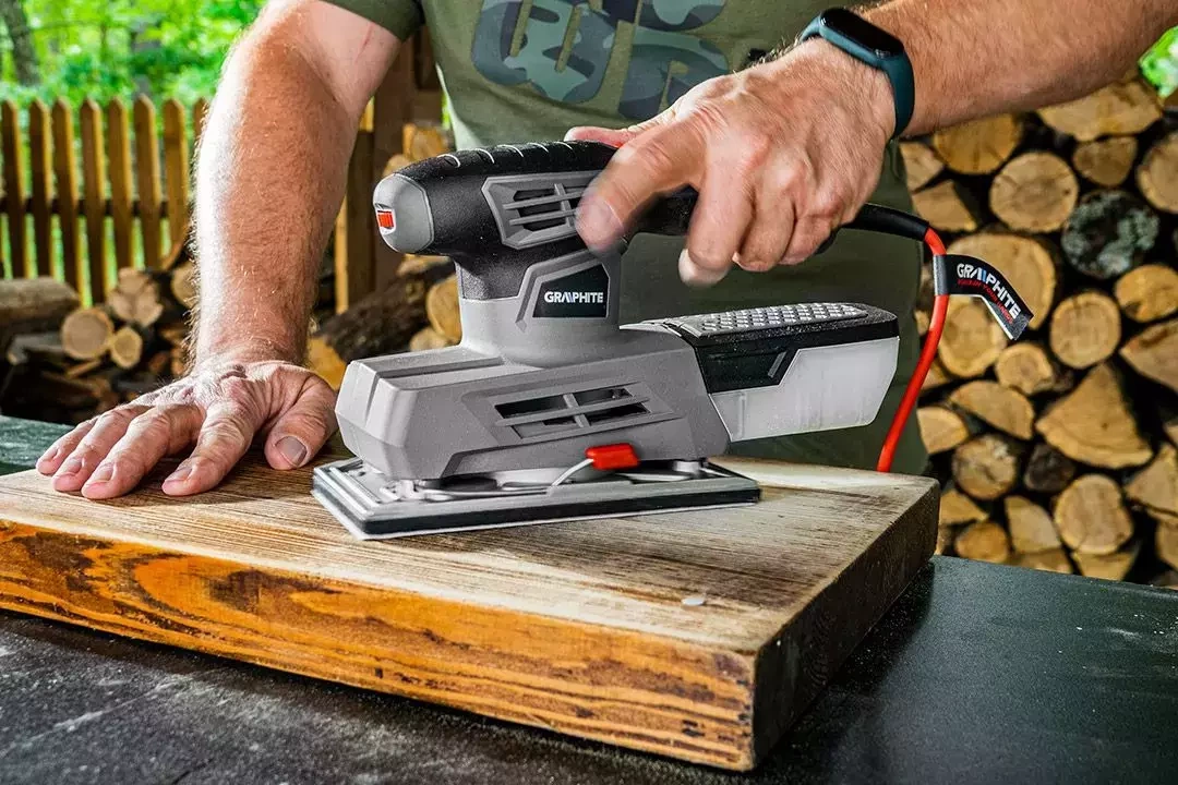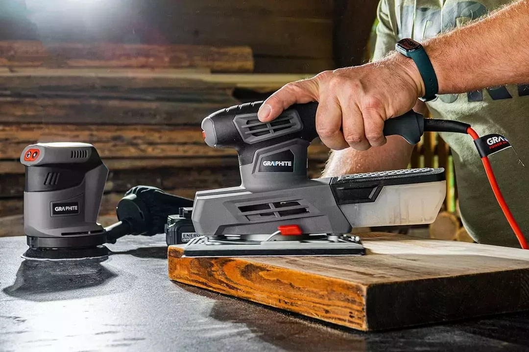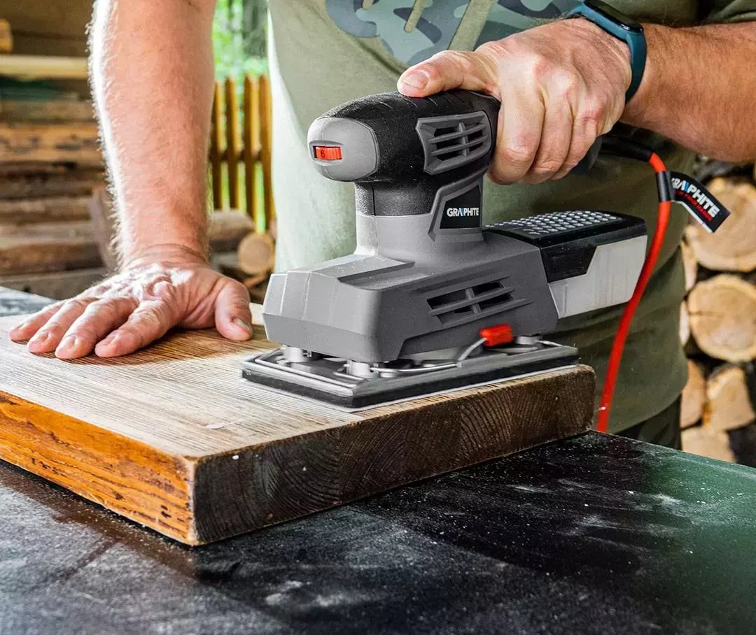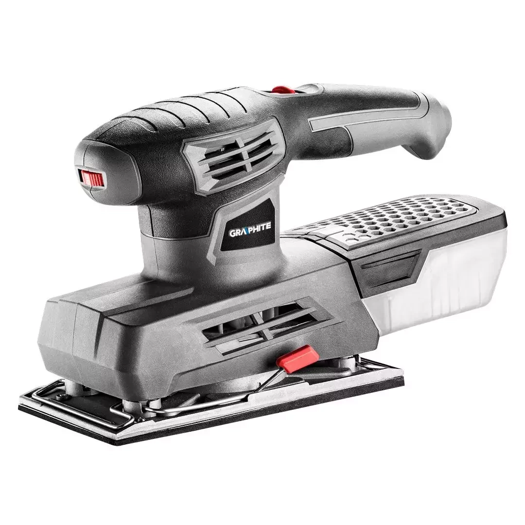 Szlifierka oscylacyjna Graphite 59G324 przeznaczona jest do obróbki wszelkiego rodzaju materiałów drewnianych i drewnopochodnych. Wydajny silnik o mocy 220 W zapewnia wydajną pracę z oscylacją w zakresie 12000 - 24000 na minutę. Stopa szlifierska o rozmiarze 90 x 187 milimetrów, wykonana została z odpornego na wysokie temperatury stopu aluminium. Obudowa oraz rękojeść główna urządzenia zostały pokryte antypoślizgowym materiałem. Urządzenie wyposażono w elastyczny i wytrzymały przewód zasilający w powłoce gumowej o długości 3m.